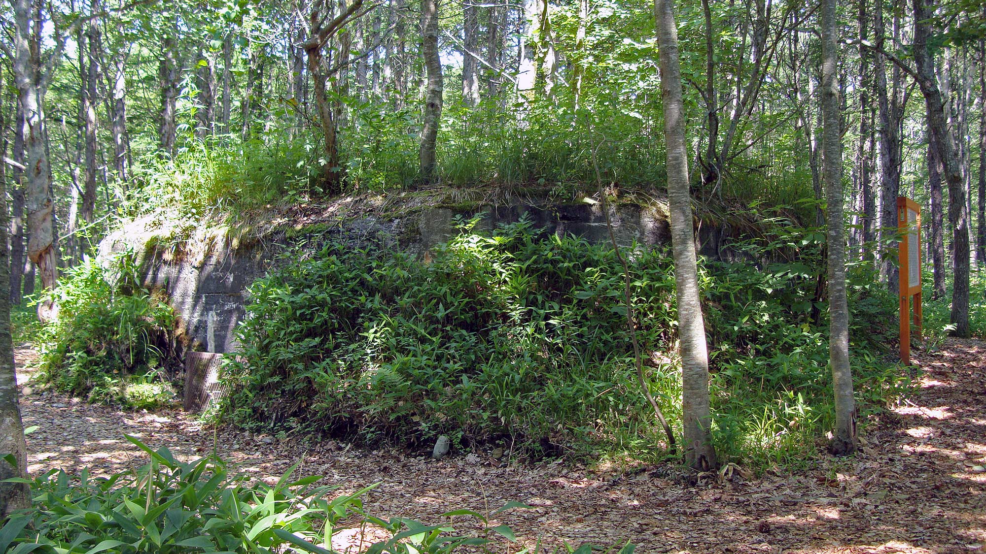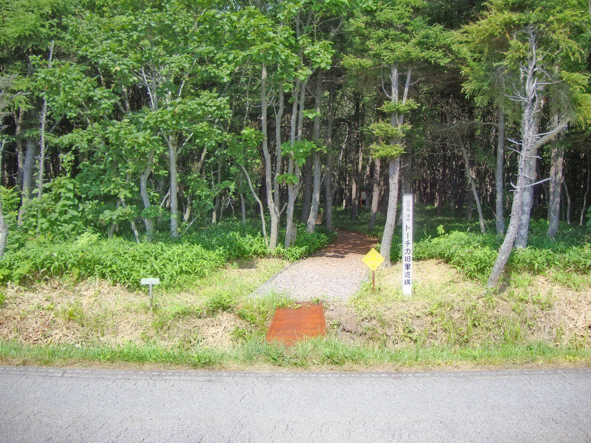 ↑ トーチカの案内標柱と散策路