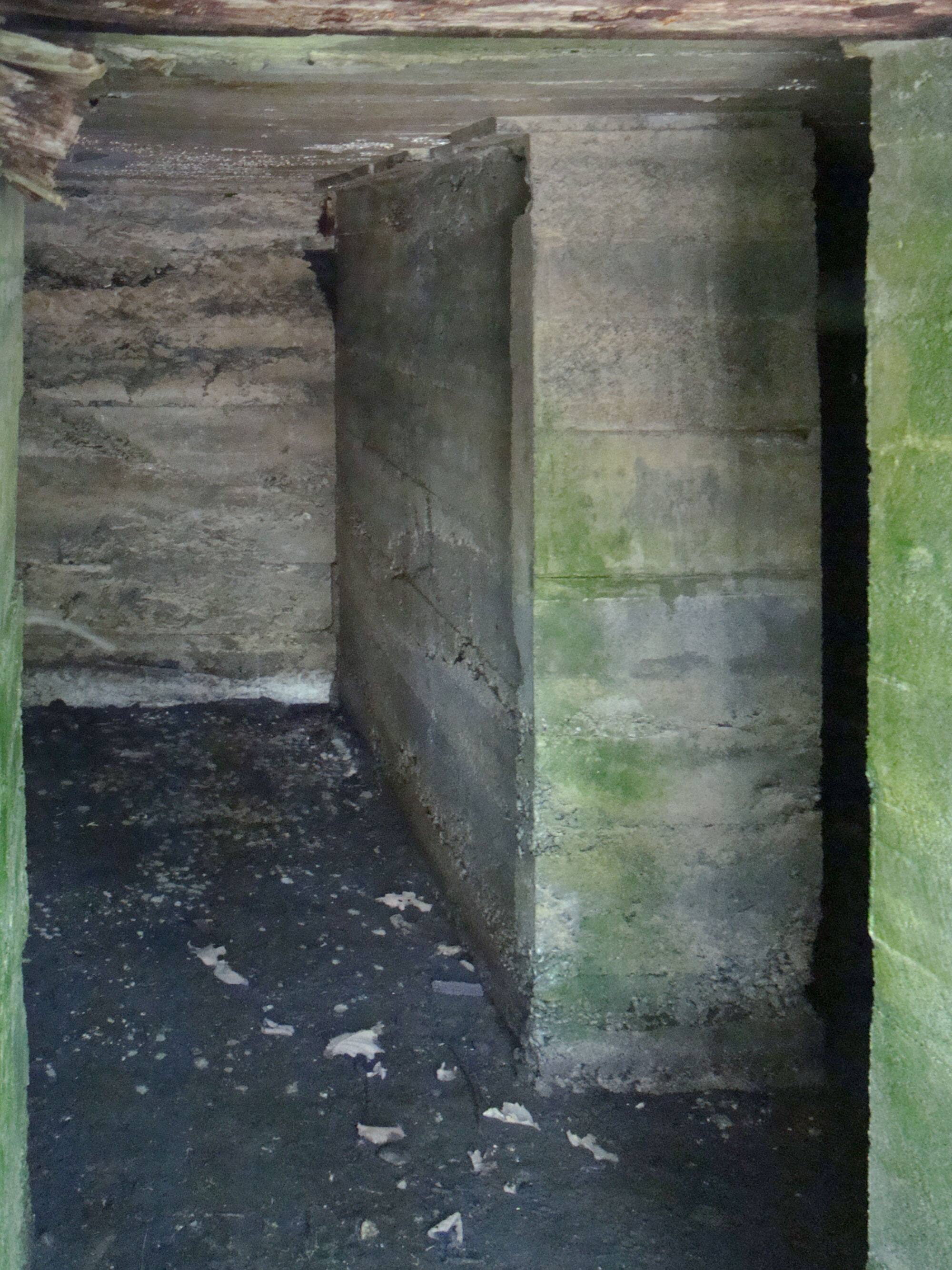 ↑ トーチカの北面(銃眼)~西面(出入口)