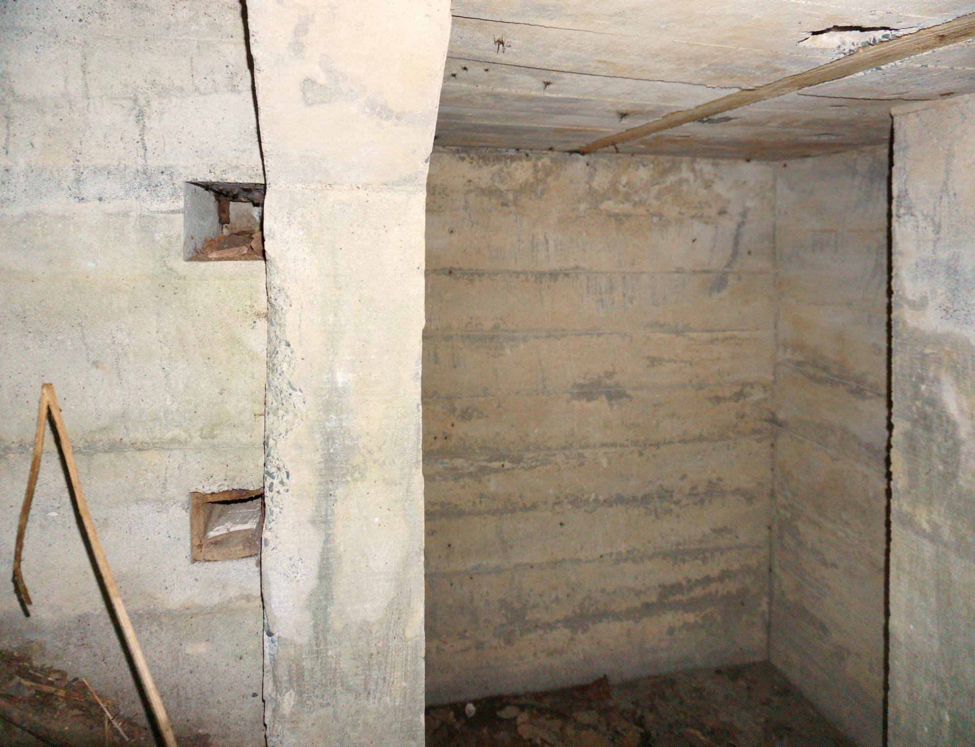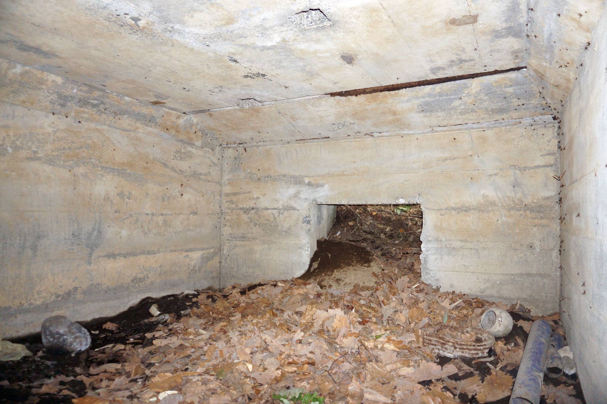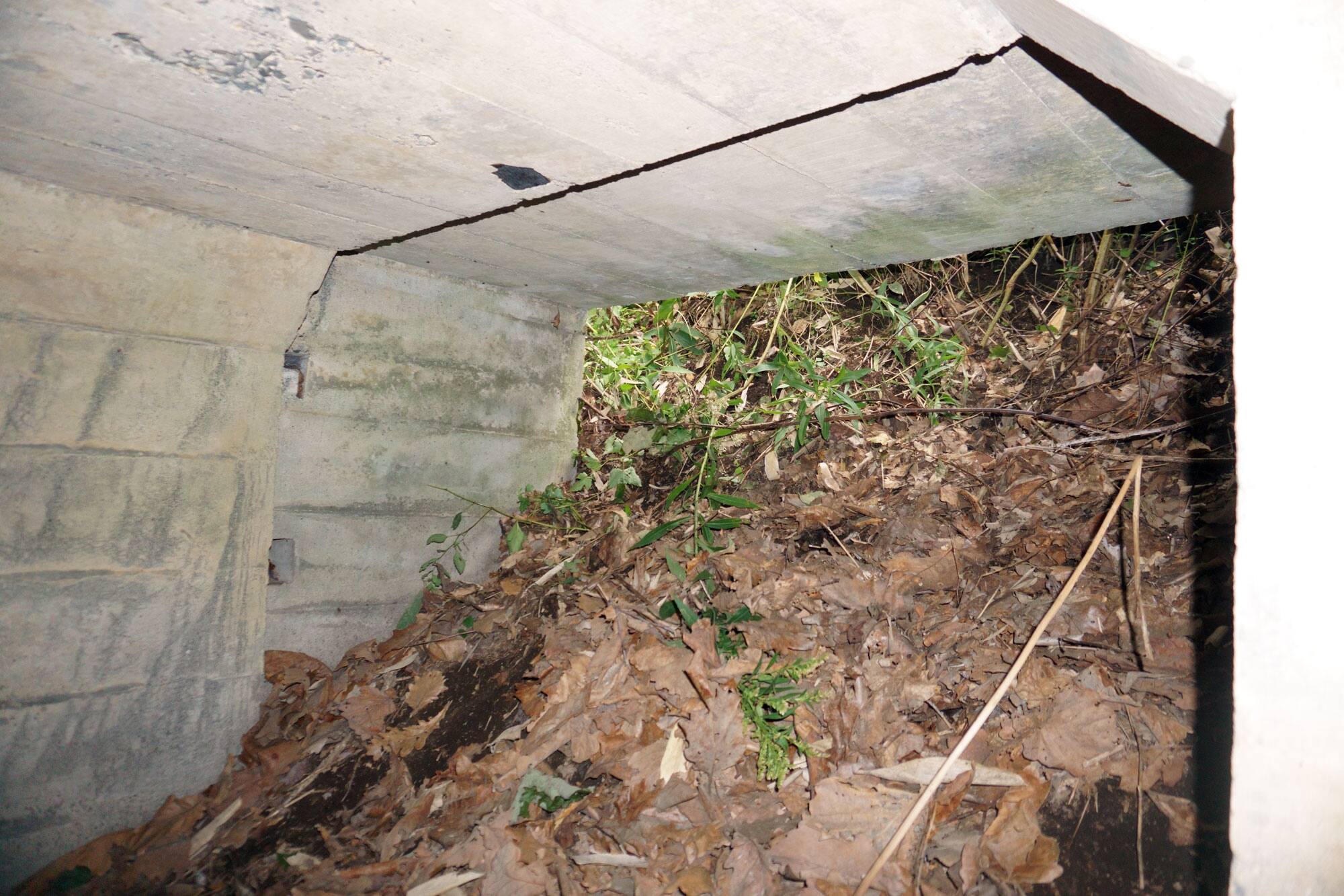 ↑ 出入口の隙間から見たトーチカの内部