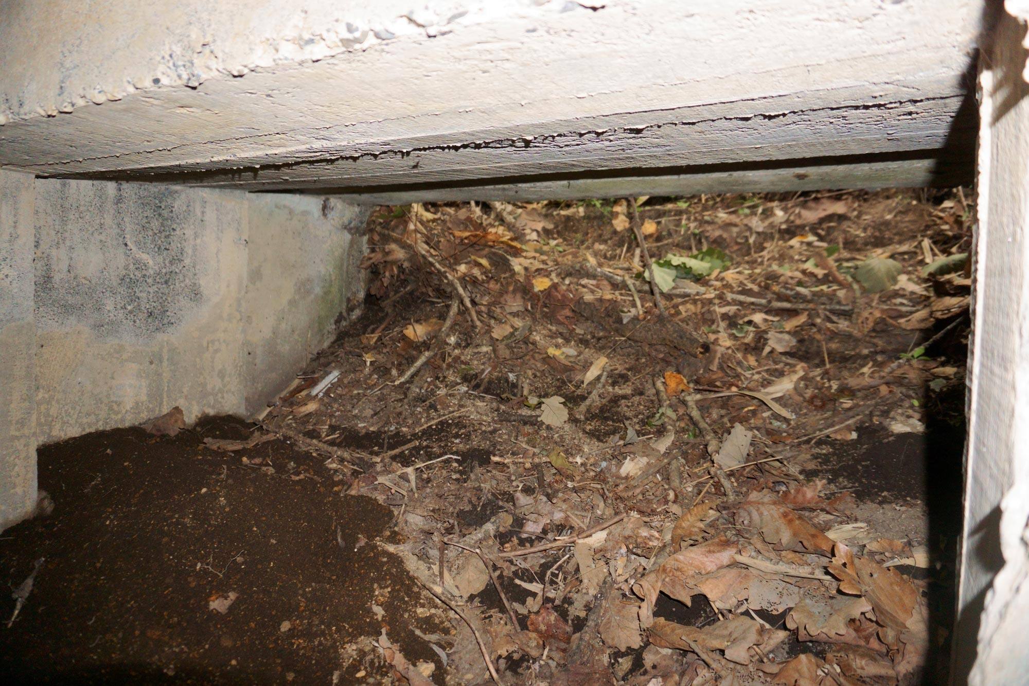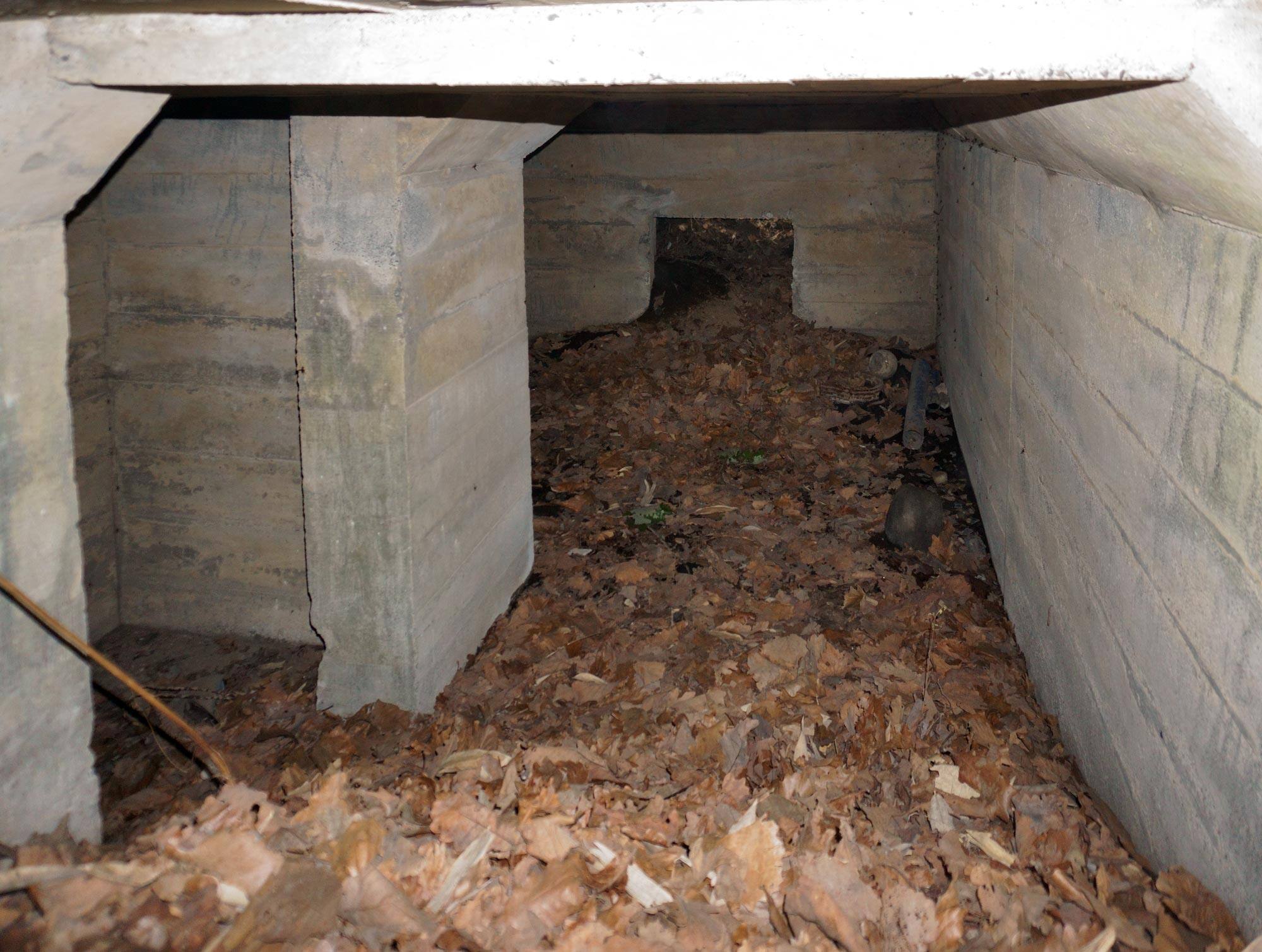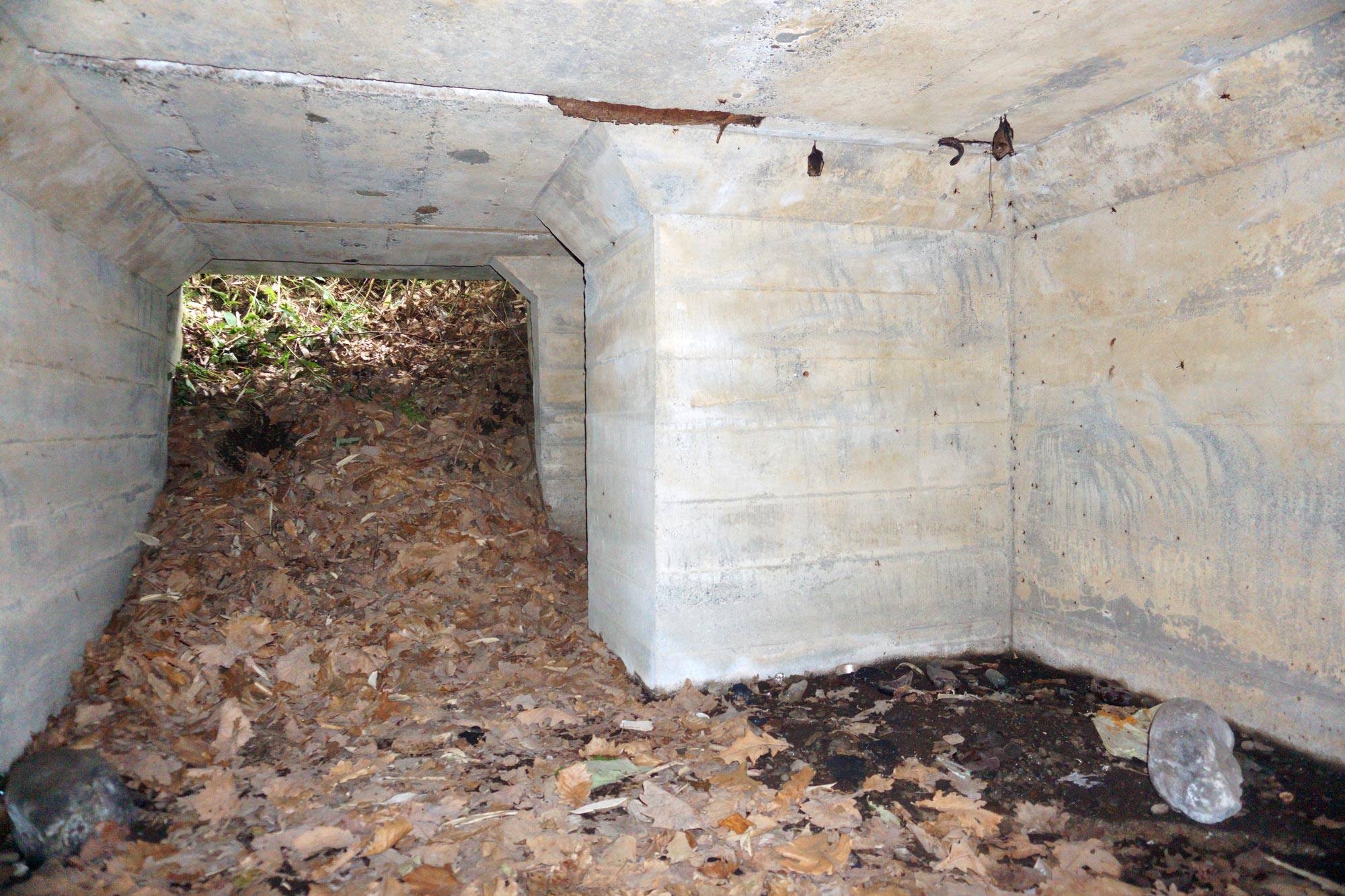 ↑ 出入口の隙間から見たトーチカの内部