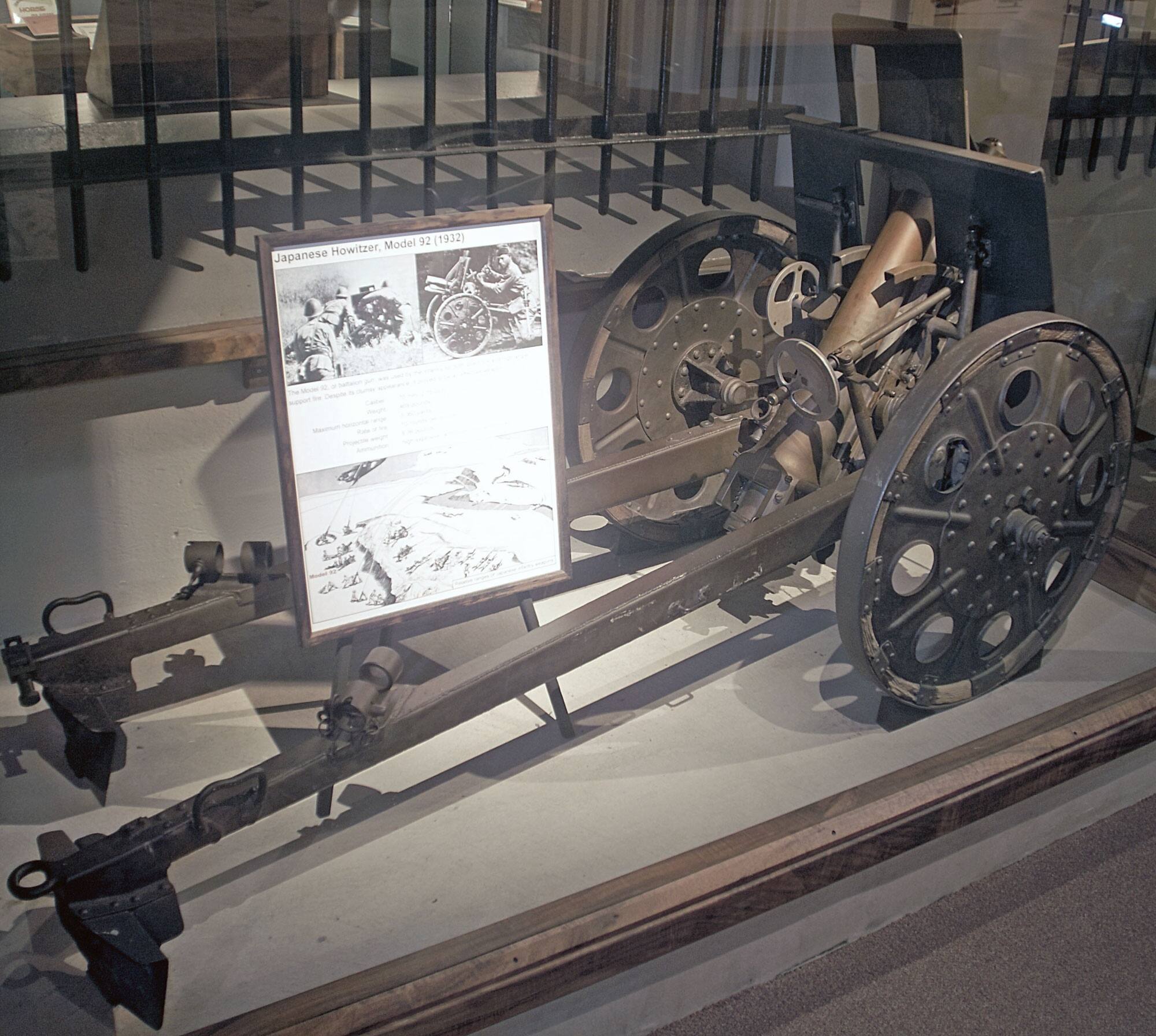 1932年(昭和7年、皇紀2592年)に制式採用された小型の大砲。歩兵大隊に2門ずつ配備されたため「大隊砲(大隊歩兵砲)」と呼ばれていた。クランク状の車軸を操作して砲身の高さを変えることで、平射と曲射が可能という特徴をもつ。